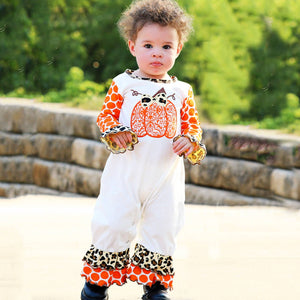 AnnLoren Baby Girls Orange pumpkin Fall Thanksgiving Romper: 12-18 Mo