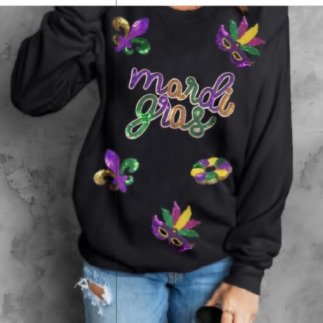Celebrate Mardi Gras in style with this eye-catching sequin sweatshirt. Crafted from premium cotton-blend fabric, it features vibrant sequin detailing that captures the festive spirit of New Orleans. The comfortable fit makes it perfect for parties, parades, or casual wear during the season. Machine washable for easy care, this statement piece delivers both comfort and glamour. Whether you're attending a themed event or simply embracing the Mardi Gras vibe, this sweatshirt ensures you'll stand out with confidence and flair.