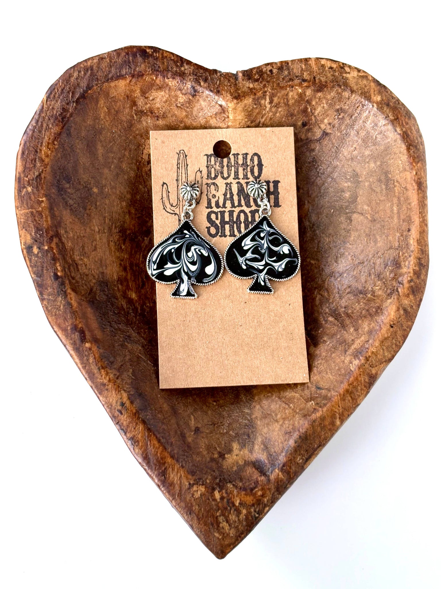 Western Card Themed Marble Spade Drop Dangle Earrings